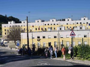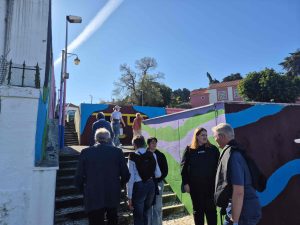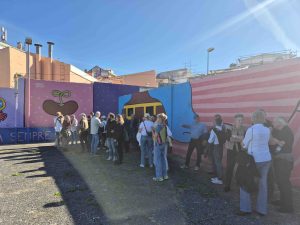 Om 15.00u werden we opgewacht door 3 gidsen, 2 Filipa’s en Hugo, bij een voormalige marktplaats in de wijk Bairro da Liberdade. Zij zijn werknemers van de gemeente die onder andere mensen rondleiden in de wijk en informatie geven over de muurschilderingen aldaar. Dit onder de noemer GAU (http://gau.cm-lisboa.pt/galeria.html ).
