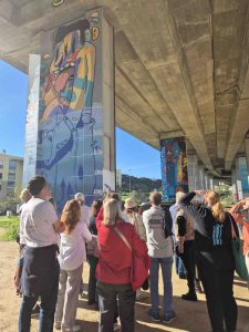 We hebben muurschilderingen mogen bewonderen in het kader van Festival Muro 2025, gemaakt door internationale kunstenaars. Het weer was fantastisch en wie kan nu zeggen dat hij/zij mooie muurschilderingen op de pilaren onder de snelweg Eixo Norte-Sul heeft gezien! Er overheen rijden doen we vaak, eronder staan wat minder.
